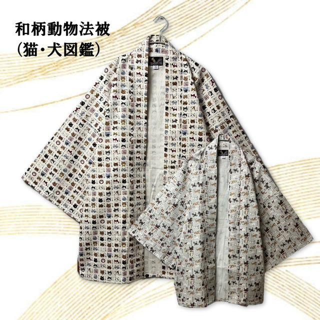 和柄動物法被(はっぴ) 猫図鑑、犬図鑑 日本製 CIAO TOKYO 539-08