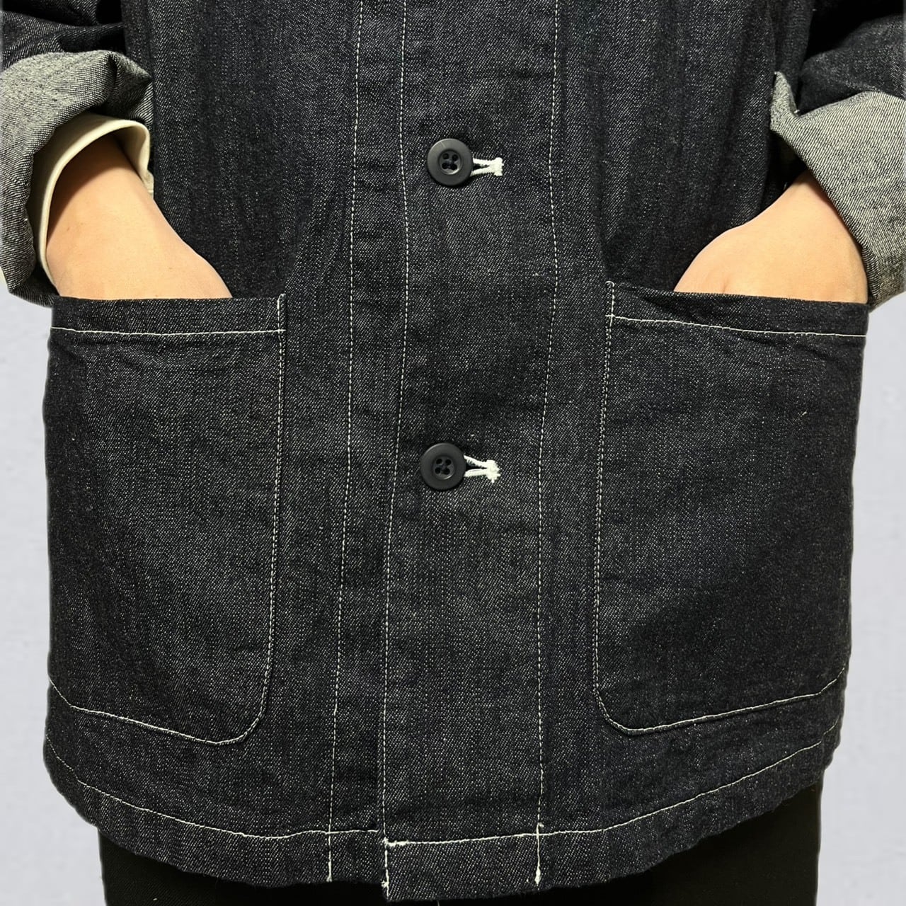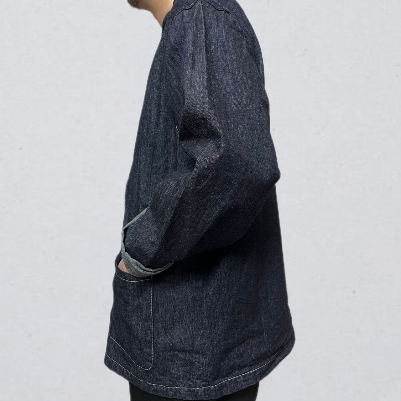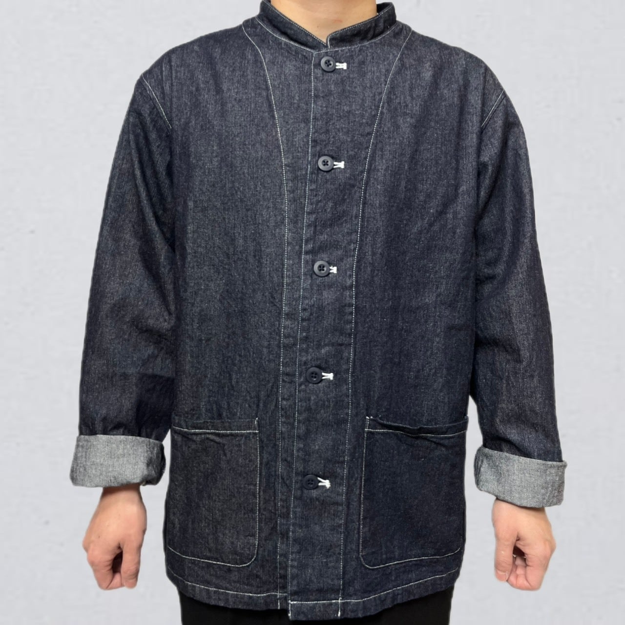 岡山で織られたデニム地を使用したこのアトリエジャケットは、普段着から仕事着までシーンを選ばず活躍する一着です!スタイリッシュでありながら、リラックス感を大切にしたデザインが魅力です。