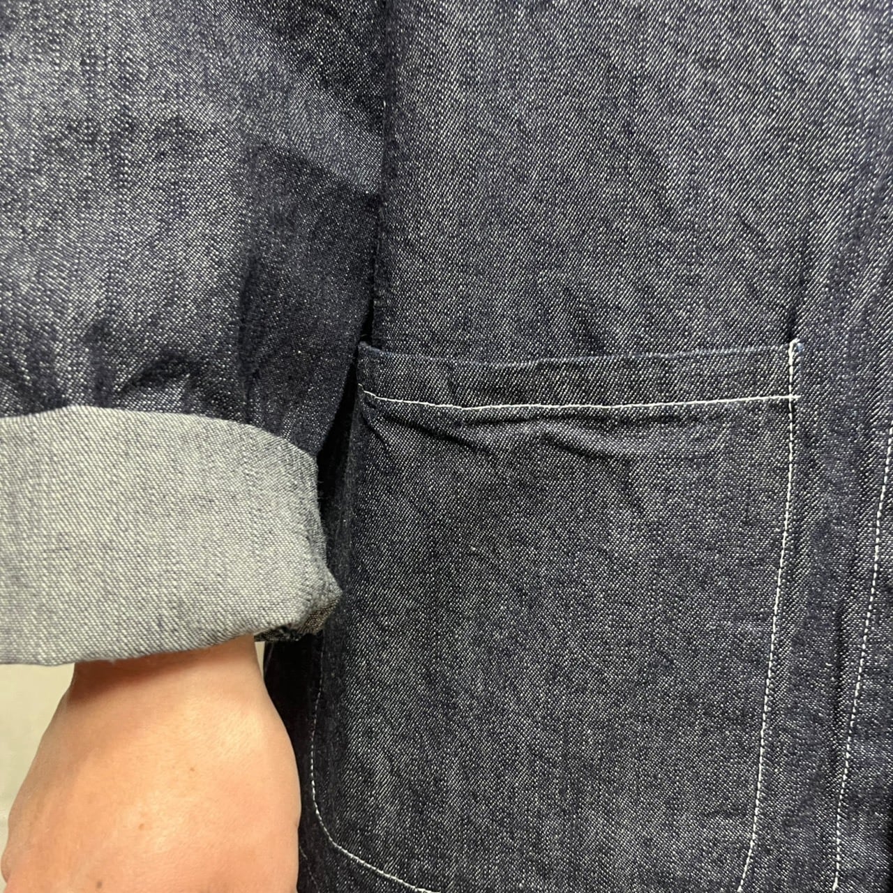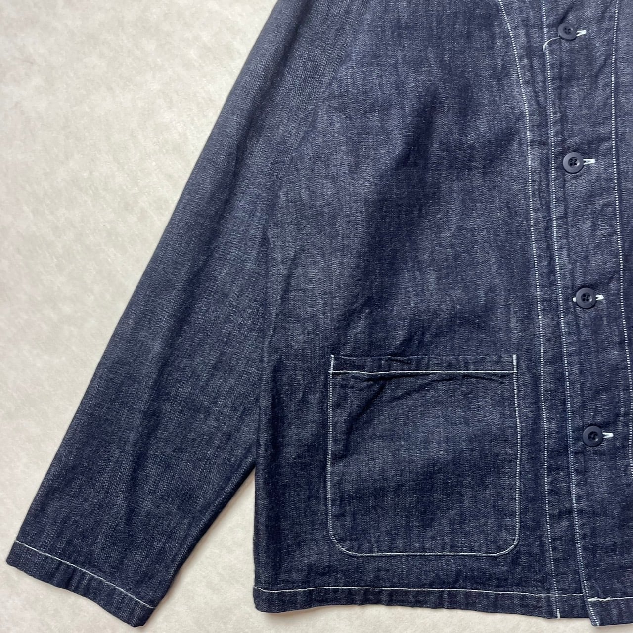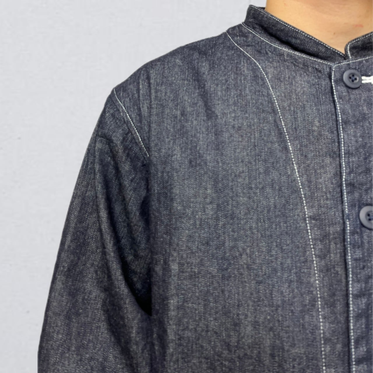 岡山で織られたデニム地を使用したこのアトリエジャケットは、普段着から仕事着までシーンを選ばず活躍する一着です!スタイリッシュでありながら、リラックス感を大切にしたデザインが魅力です。