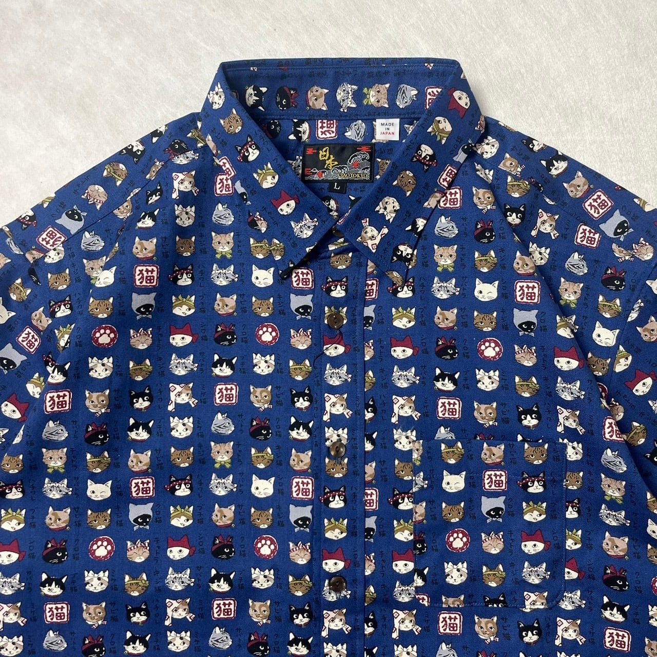 "和柄半袖RG(猫図鑑) 日本製 CIAO TOKYO 244-62"は、猫好きにはたまらない魅力的な総柄シャツです。身幅が広めで、ゆったりとしたシルエットが特徴的で、快適に着用いただけます。