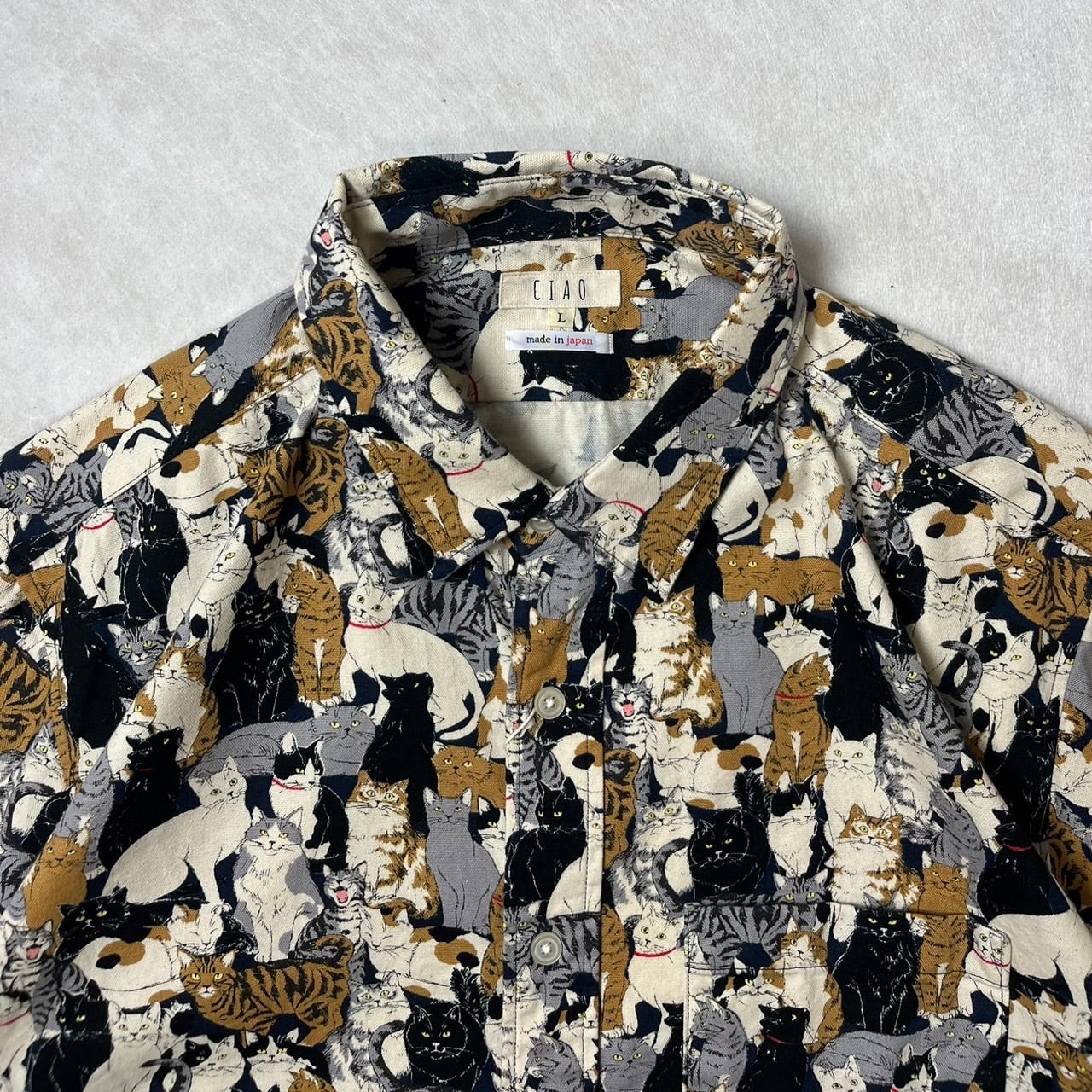 "にゃんこいっぱい半袖シャツ 日本製 CIAO TOKYO 244-51"は、大人気のにゃんこいっぱいシャツが半袖になって新登場です!様々な猫が描かれたユニークなデザインで、あなたの個性を引き立てる魅力的な一着です。