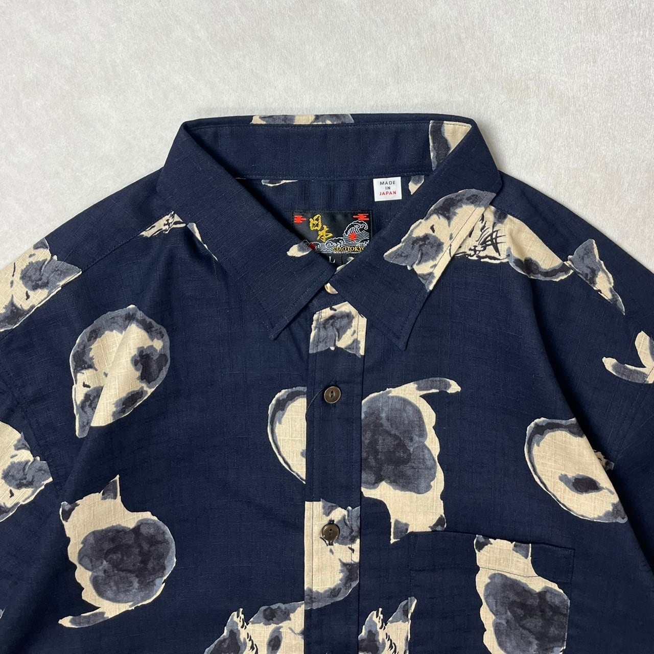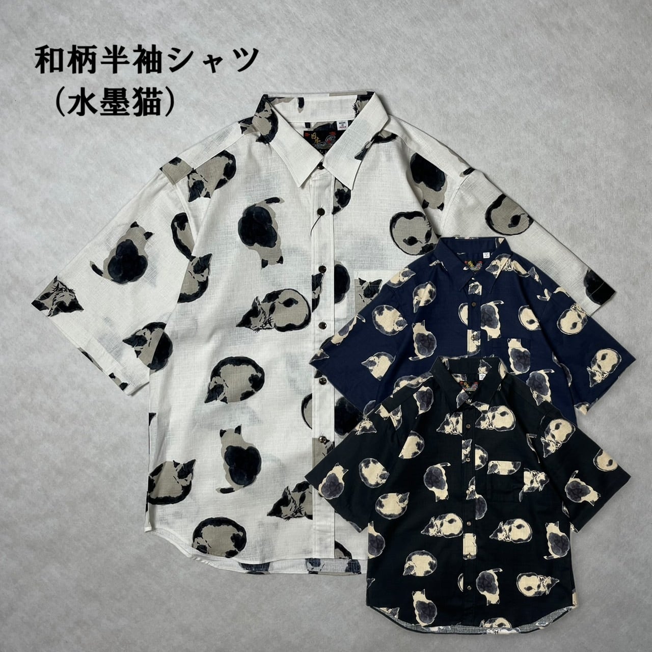 "和柄半袖シャツ(水墨猫) 日本製 CIAO TOKYO 244-60"は、日本の伝統文化を象徴する水墨画で描かれた猫のデザインを施した、魅力的な半袖シャツです。身幅が広めで、リラックスしたシルエットが特徴で、快適な着心地を実現しています。