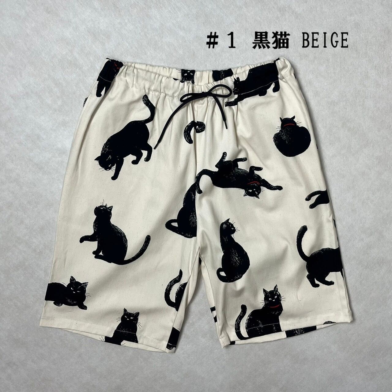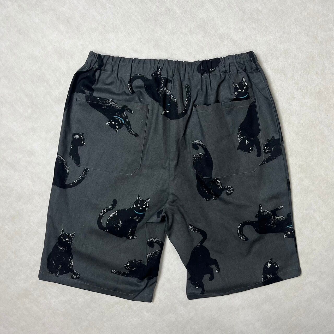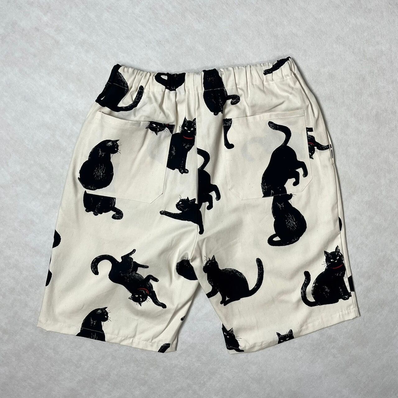 "アニマルショーツ(黒猫) 日本製 CIAO TOKYO SP5112"は、人気の黒猫シャツをハーフパンツスタイルに落とし込んだ、ユニークでリラックス感溢れる一着です。ゆったりとしたサイズ感が特徴で、夏の暑さにぴったりなデザインになっています。