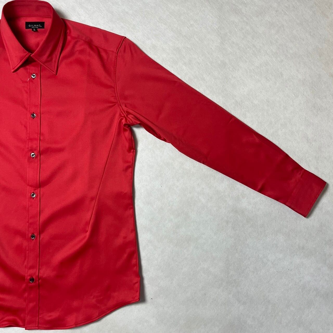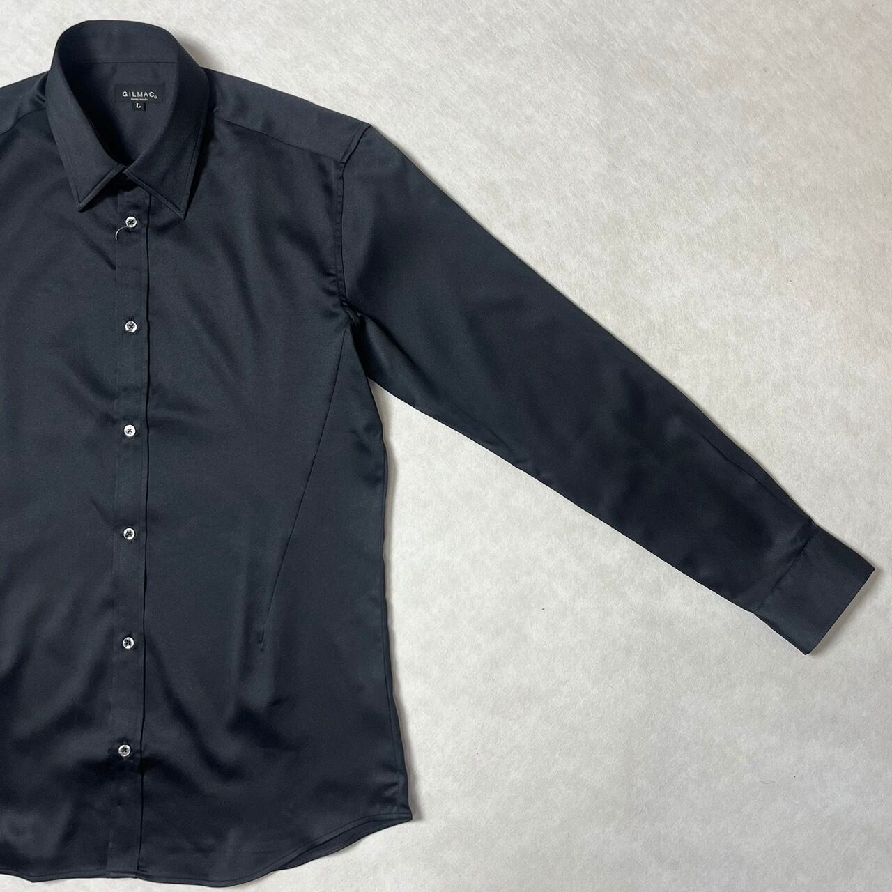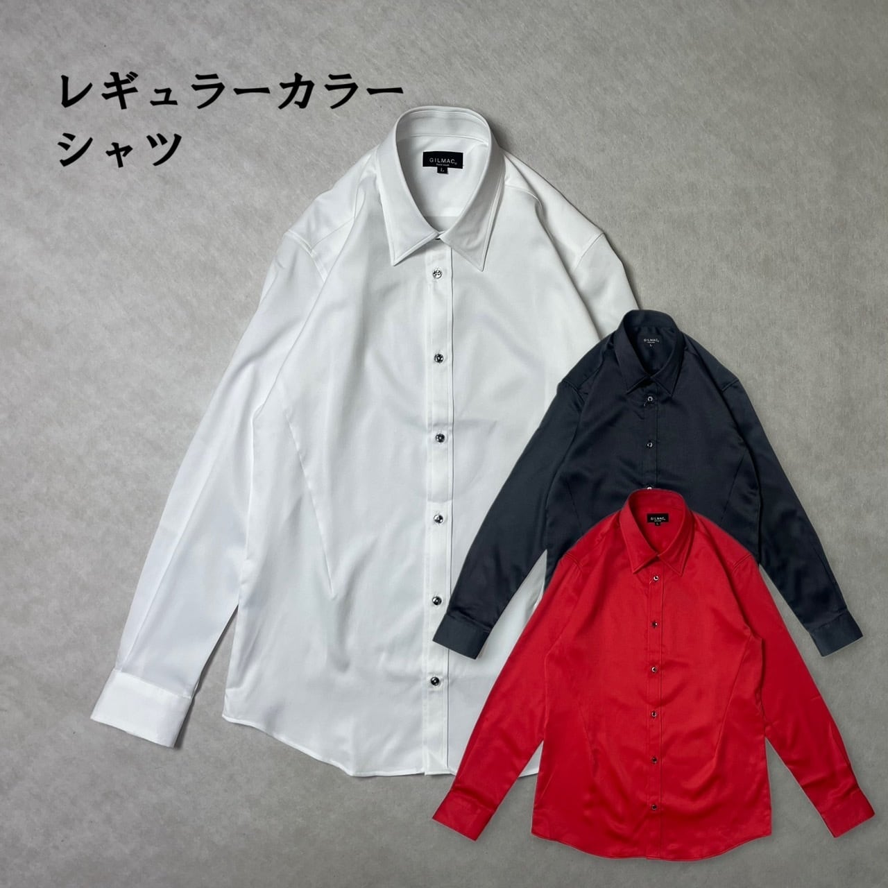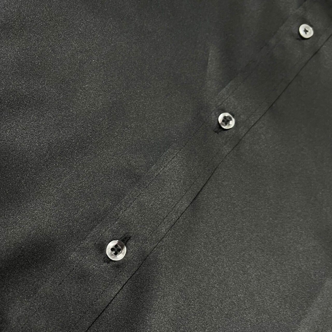 光沢のある質感のポリエステル素材を使用したレギュラーカラーシャツ、細身のデザインでスタイリッシュに着こなせます。
