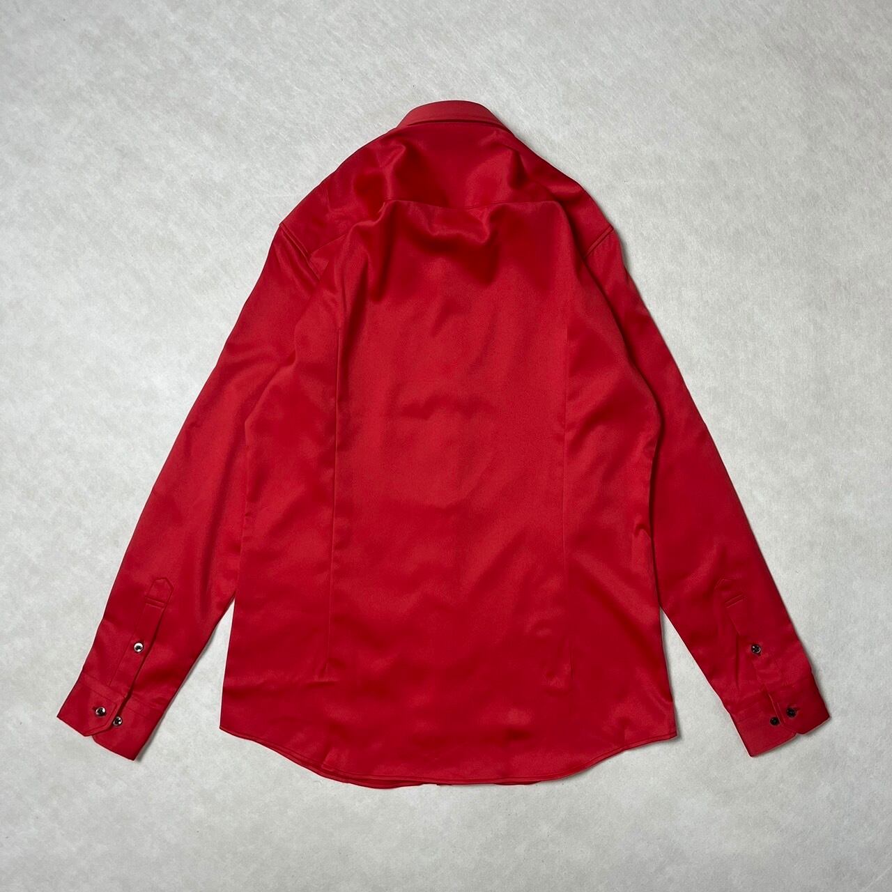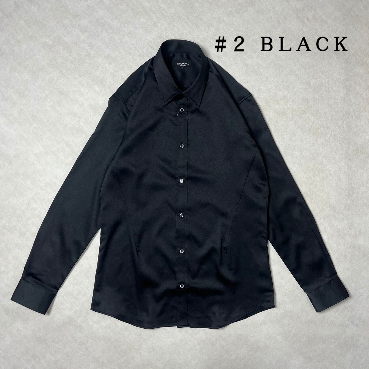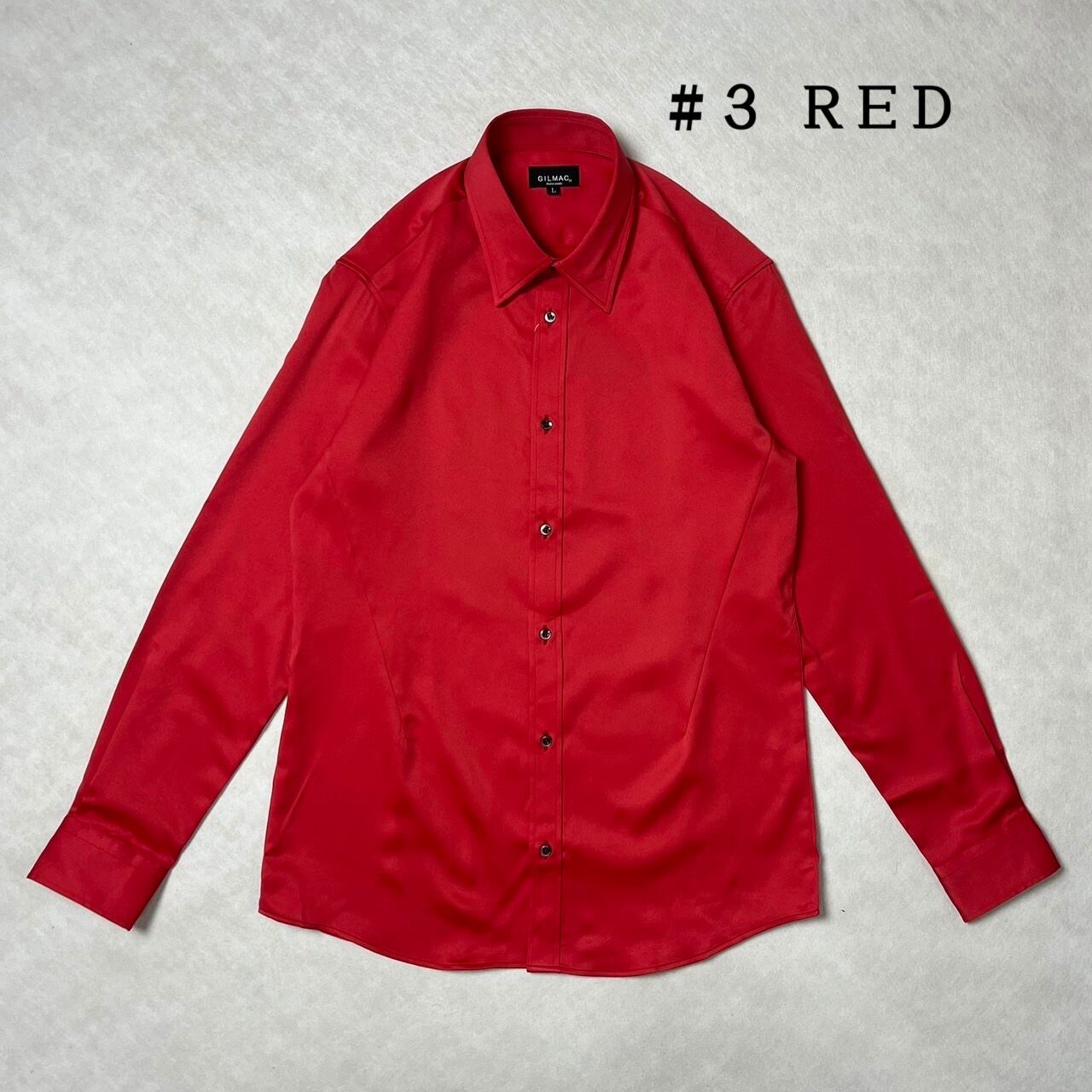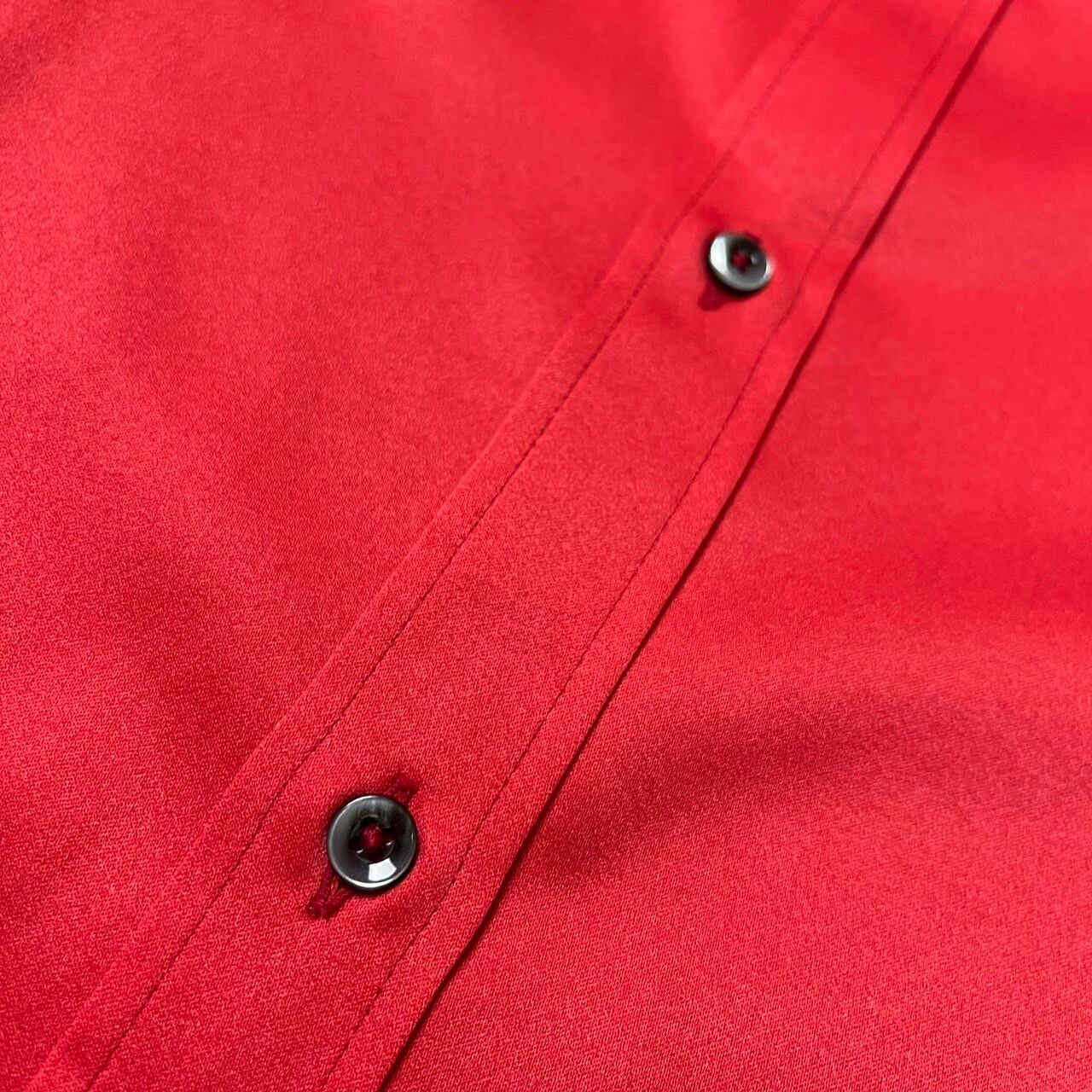 光沢のある質感のポリエステル素材を使用したレギュラーカラーシャツ、細身のデザインでスタイリッシュに着こなせます。