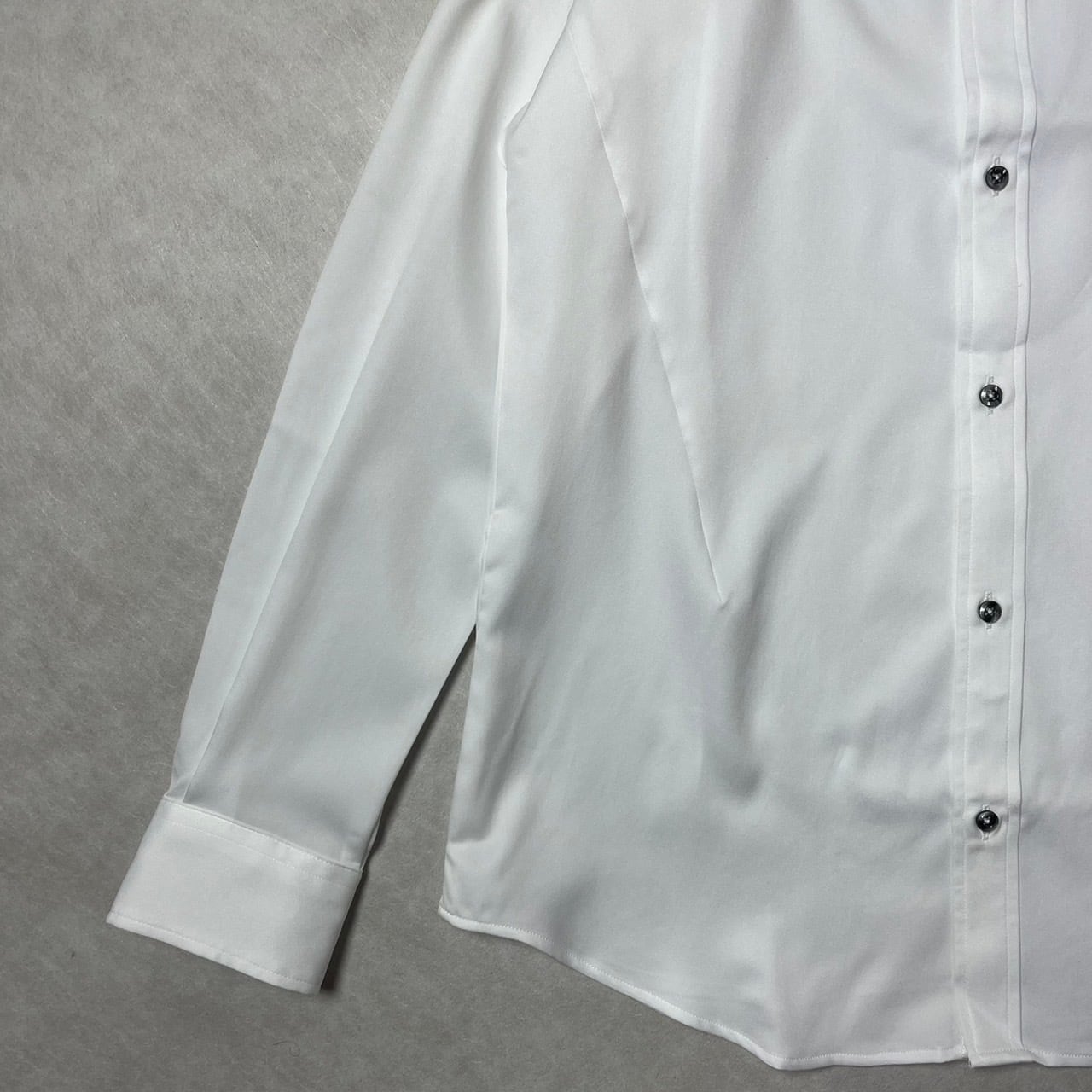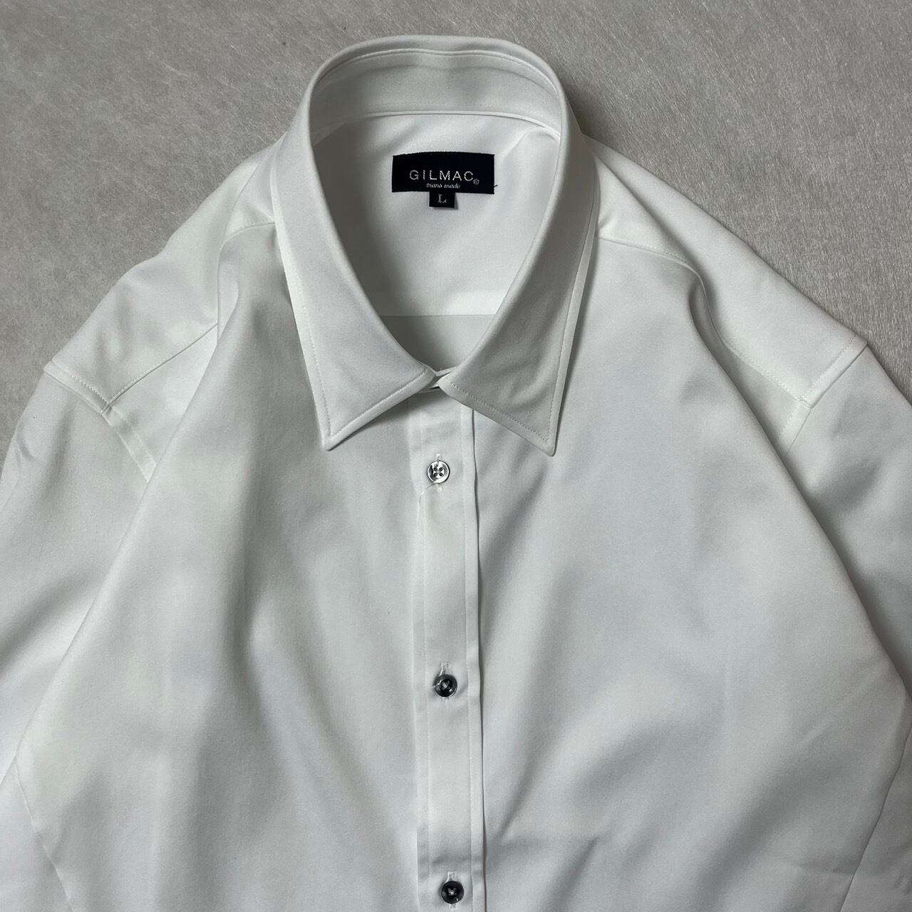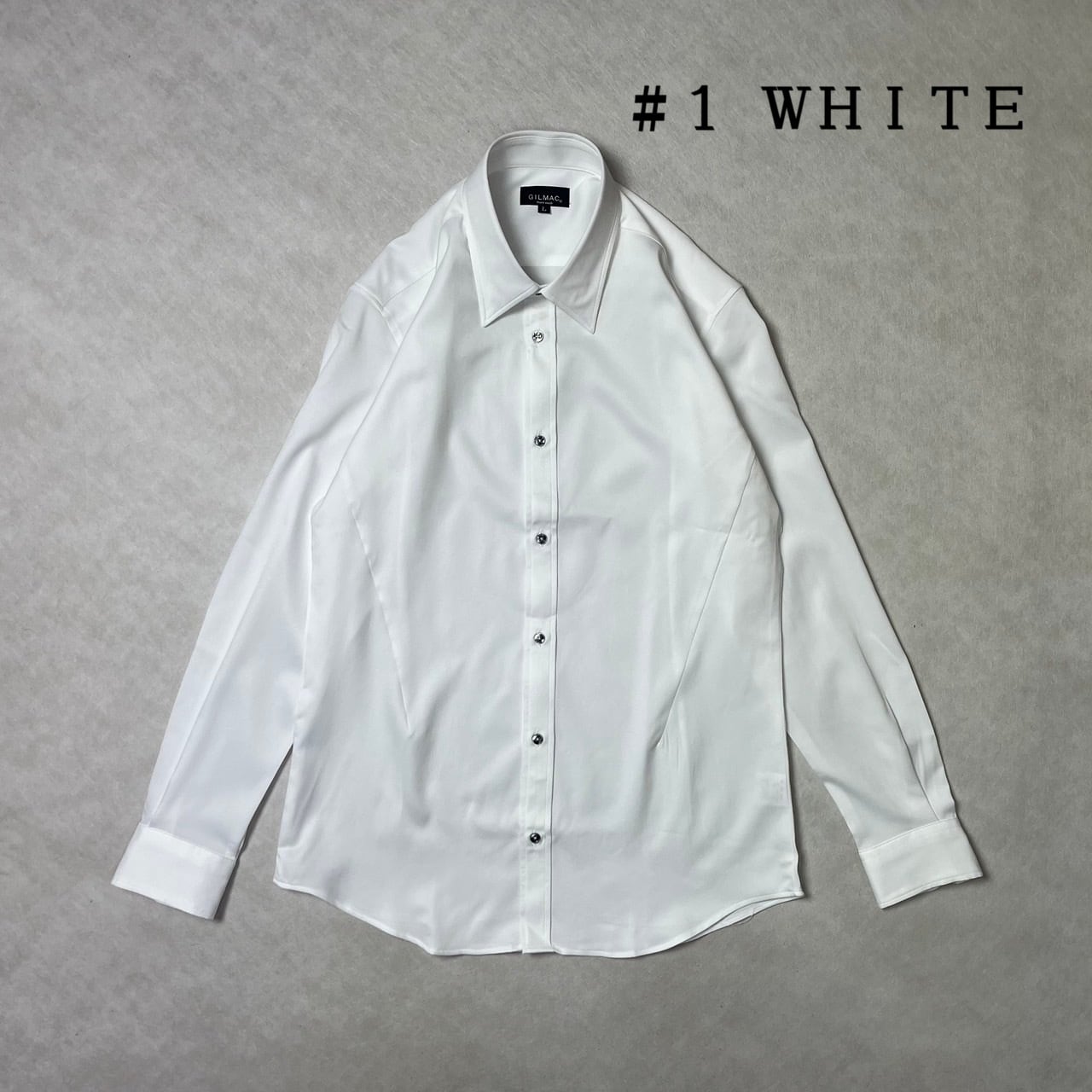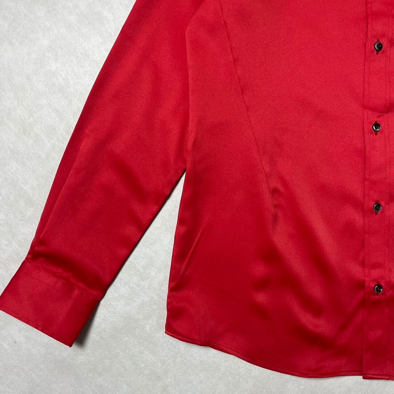 光沢のある質感のポリエステル素材を使用したレギュラーカラーシャツ、細身のデザインでスタイリッシュに着こなせます。