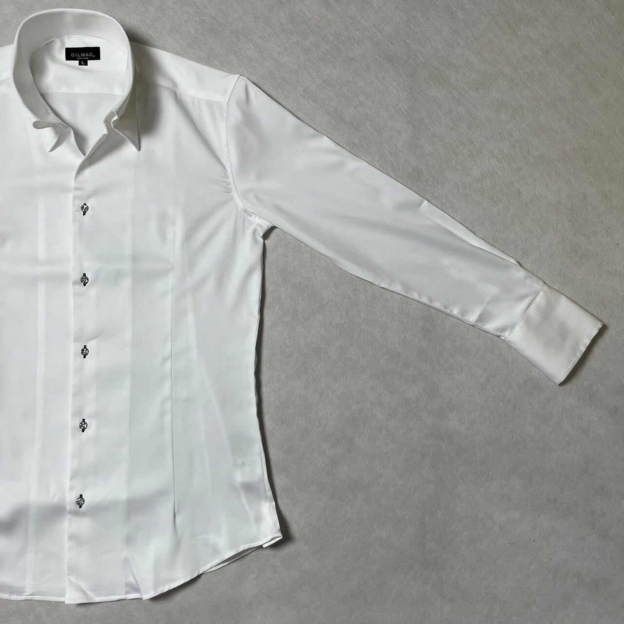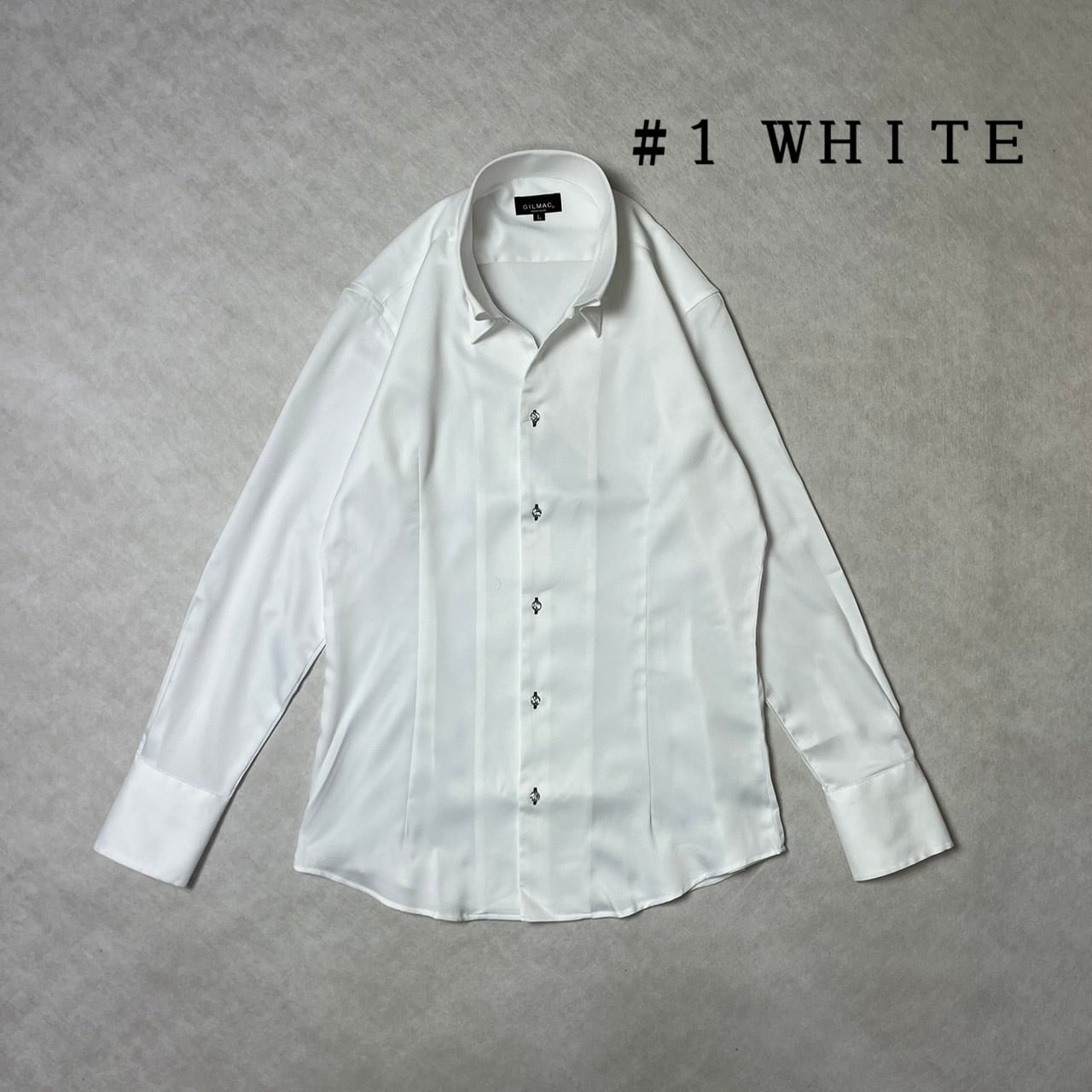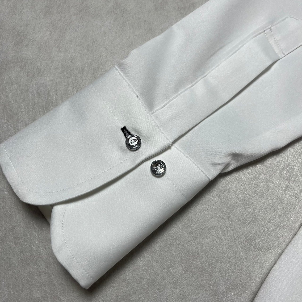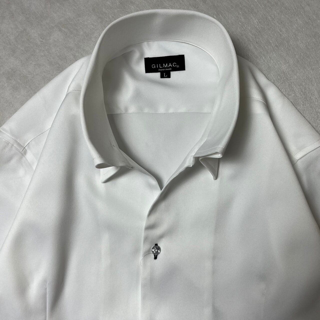 ノータイでも襟元が美しく決まるデザインで、フォーマルからドレスカジュアルまで幅広く活躍します。