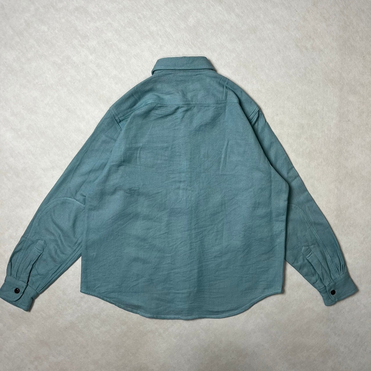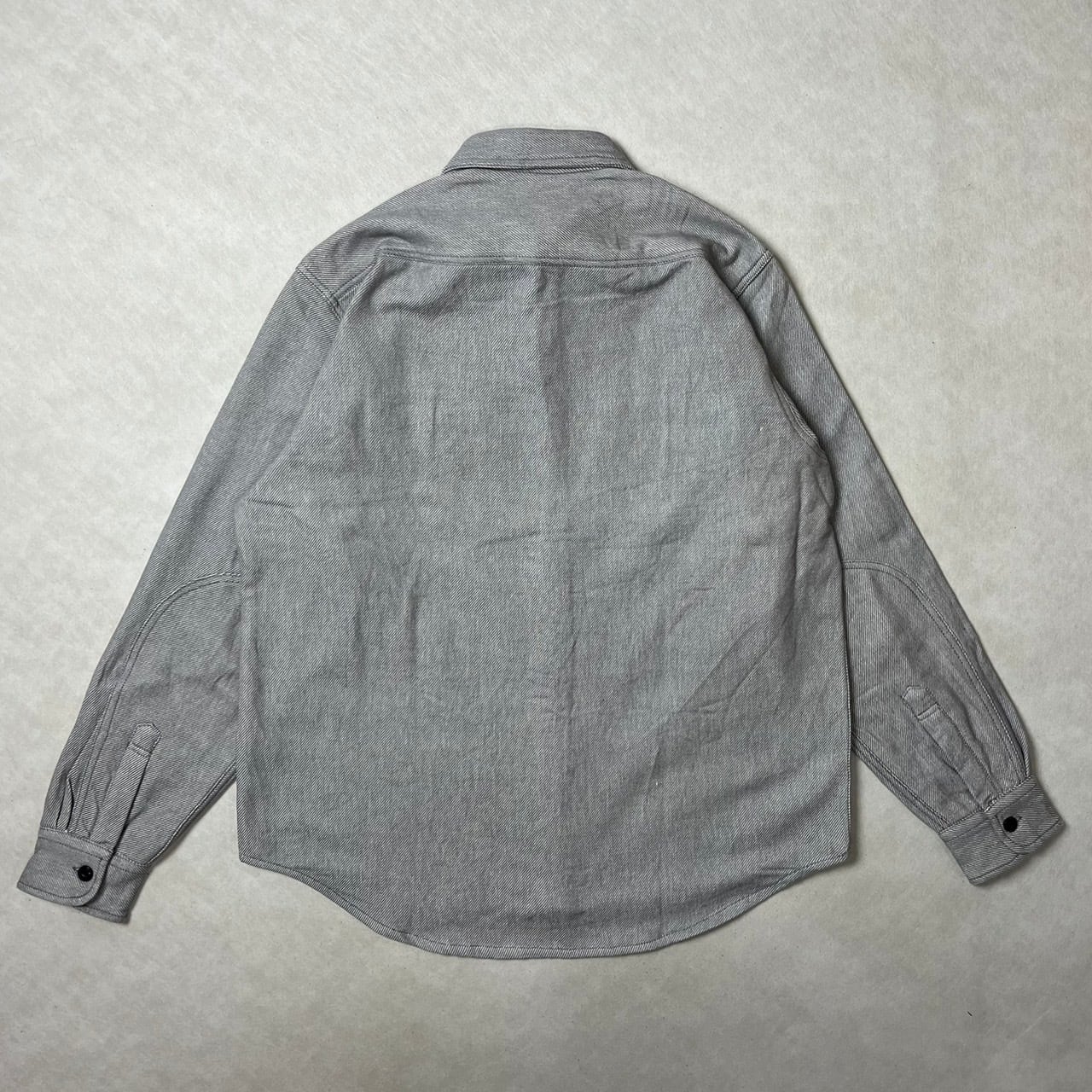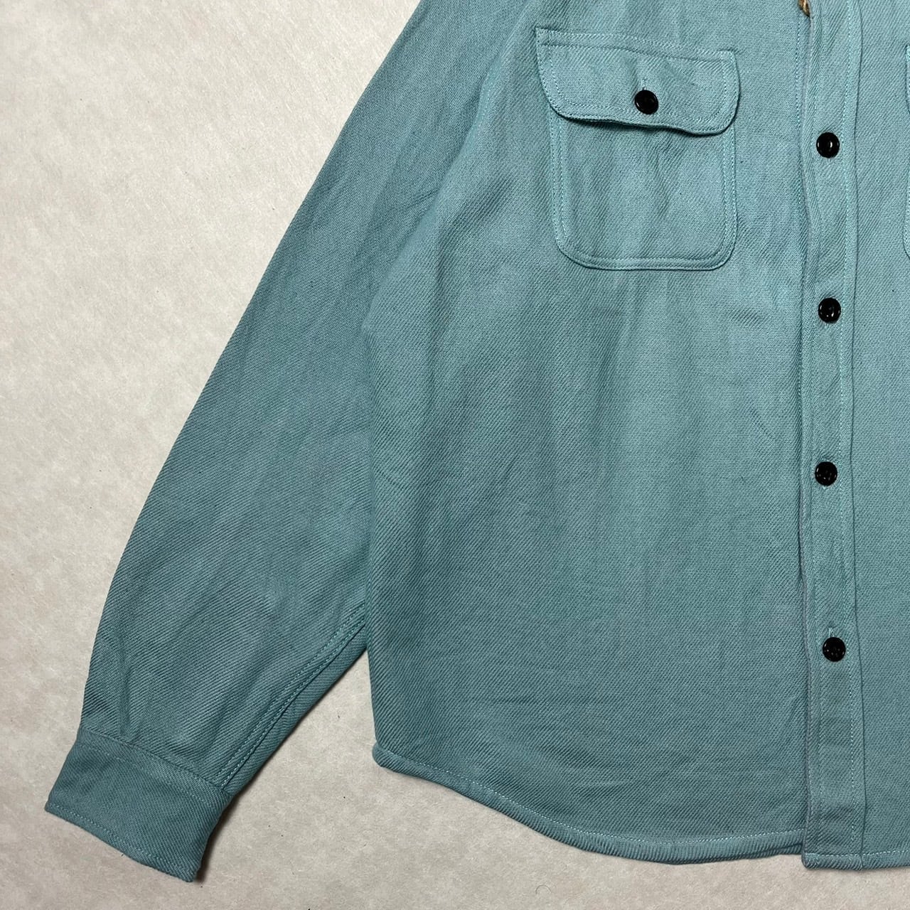 無地ならではのシンプルで落ち着いた表情が魅力。ワークシャツらしい両胸ポケットや、存在感のあるネコ目ボタンなど、クラシックなディテールをしっかりと踏襲しつつ、どんなコーディネートにも合わせやすいデザインに仕上げています。