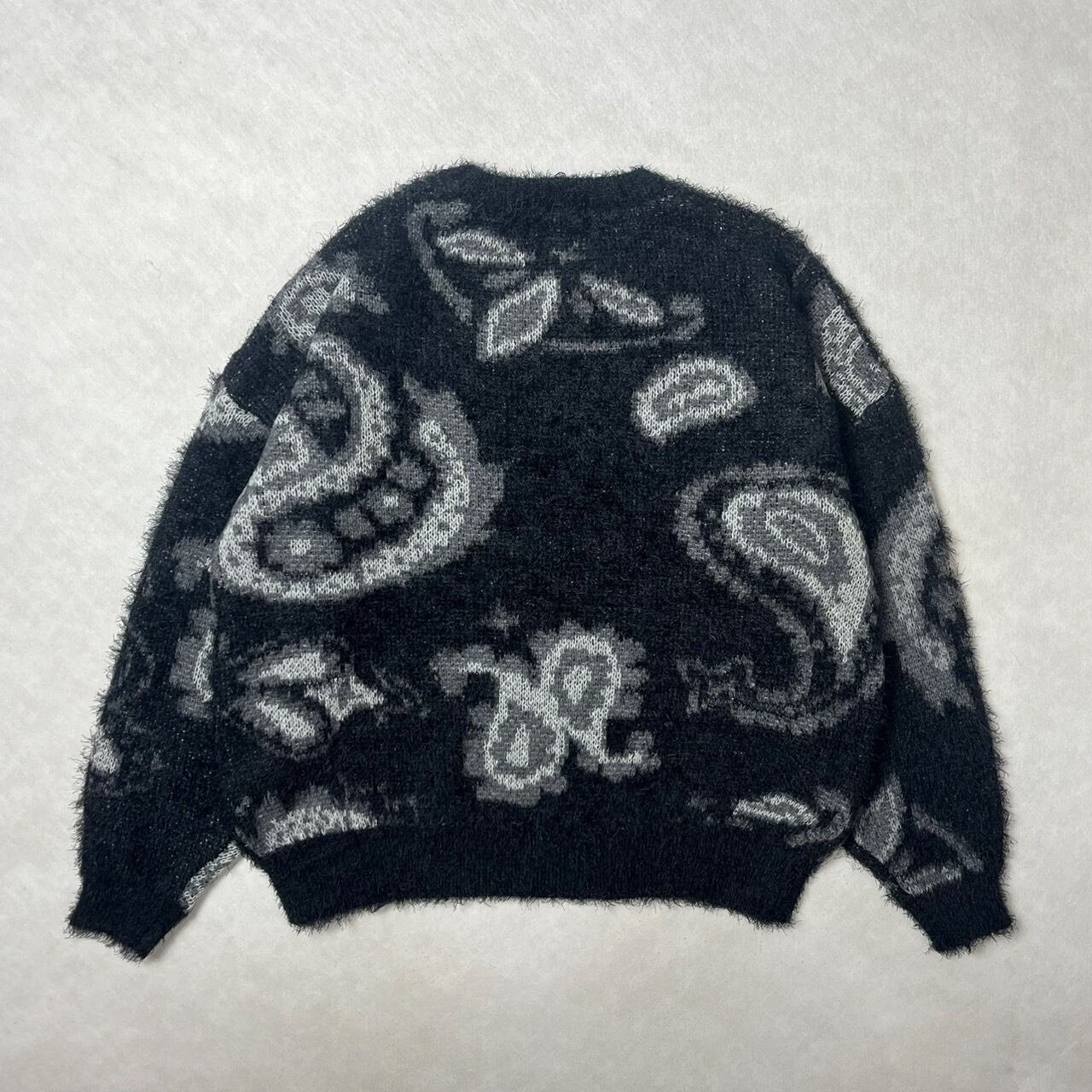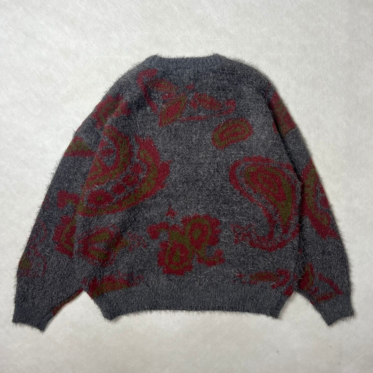 モヘア調の毛足の長いクルーネックニットです。
