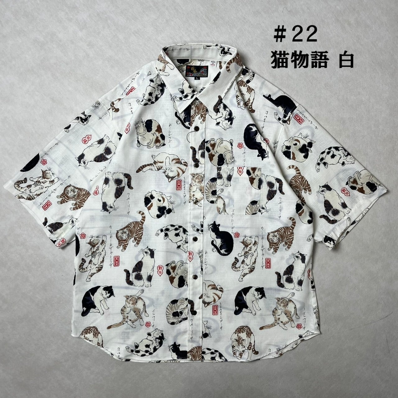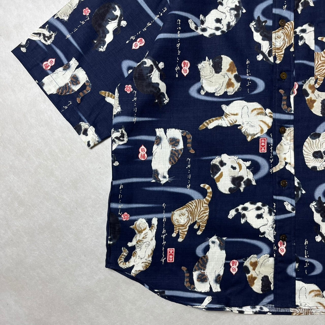 "和柄半袖シャツ(猫物語) 日本製 CIAO TOKYO 244-60"は、浮世絵風の猫柄がデザインされた、魅力的な半袖シャツです。