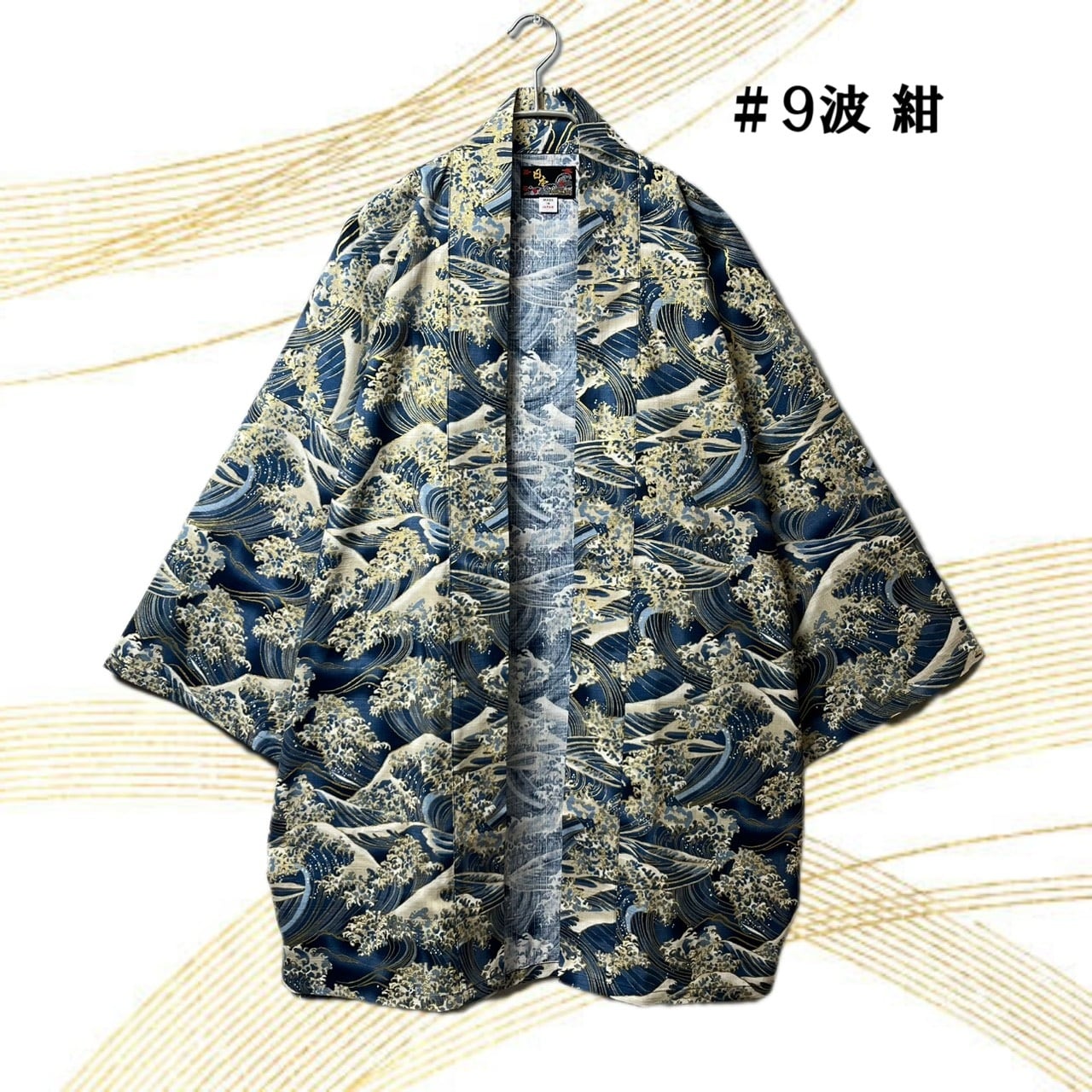 "金入り法被(はっぴ) 波 日本製 CIAO TOKYO 539-07"は、魅力的な波デザインが特徴の特別な法被です。美しい波模様が全体に施されており、伝統とモダンが融合した一枚。リラックスしたシルエットが特徴で、心地良い着心地を実現しています。