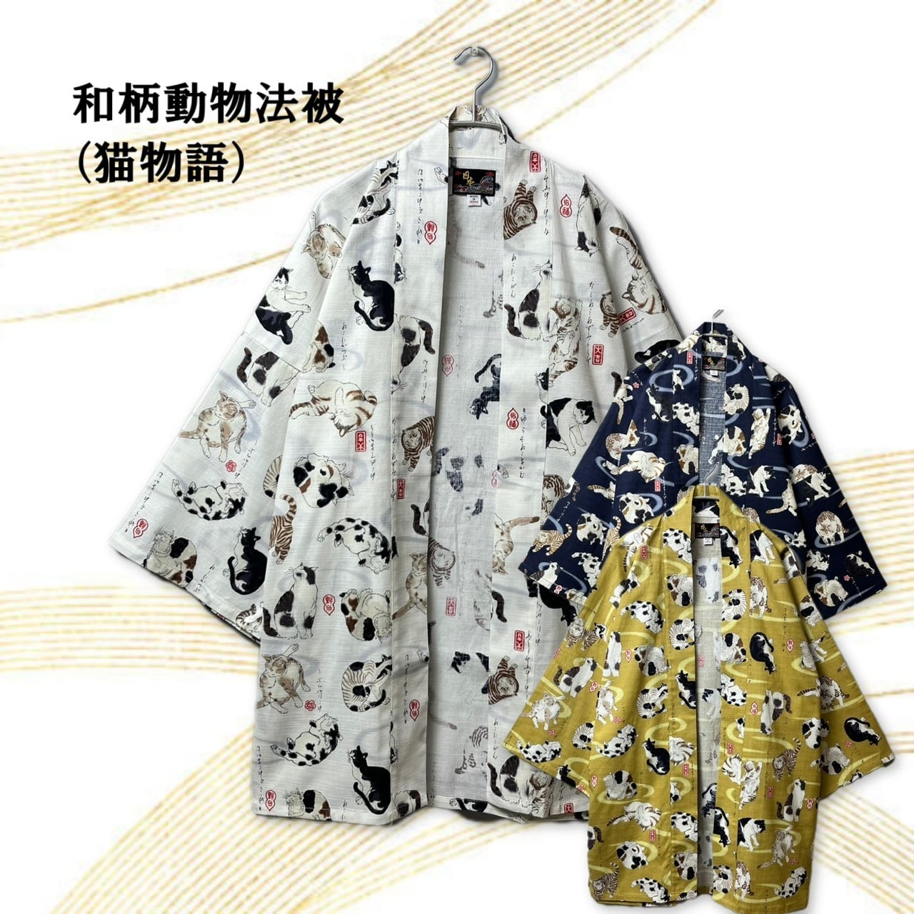 "和柄動物法被(はっぴ) 猫物語 日本製 CIAO TOKYO 539-08"は、浮世絵風の猫が愛らしく描かれた特別な法被です。可愛い猫たちがデザインに取り入れられており、一目で心を掴まれる一枚。リラックスしたシルエットが特徴で、快適な着心地が実現されています。