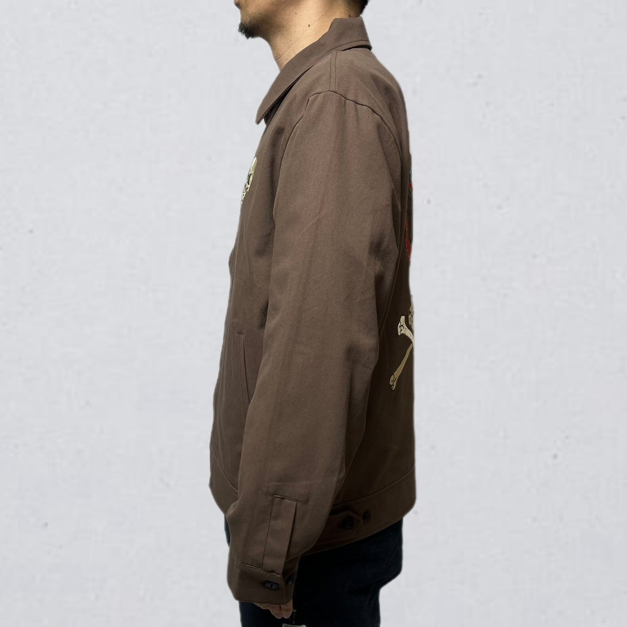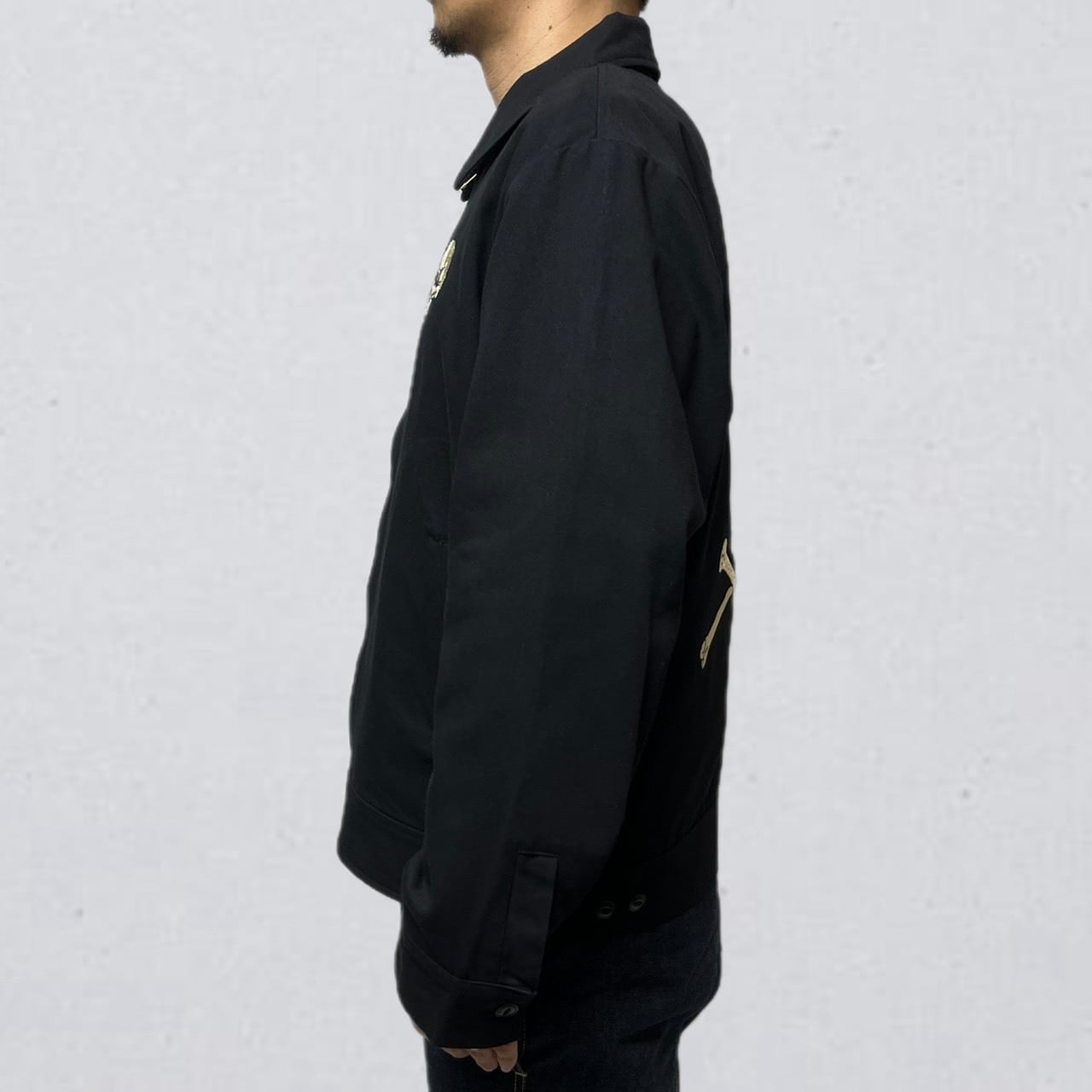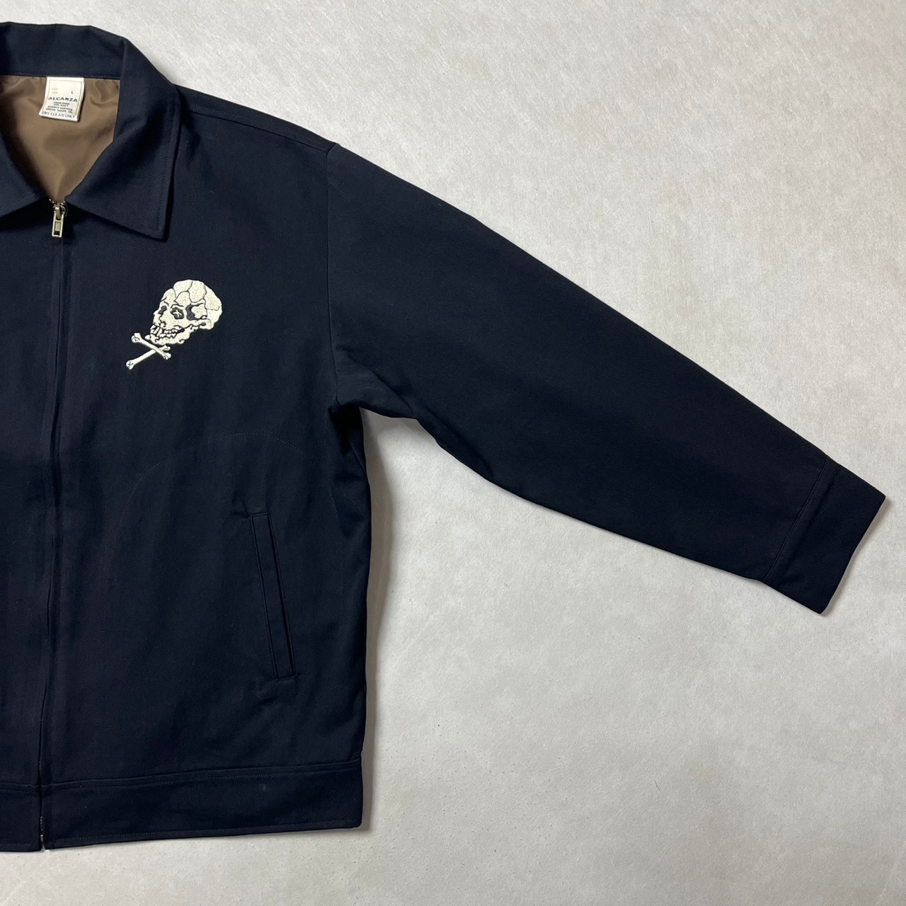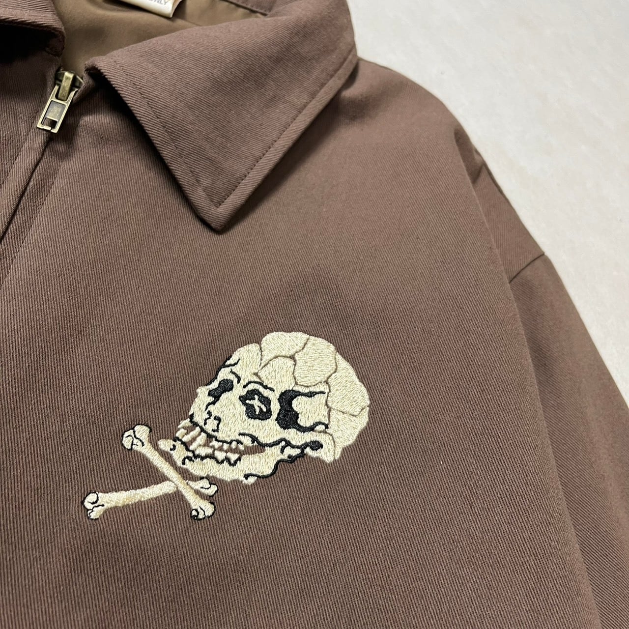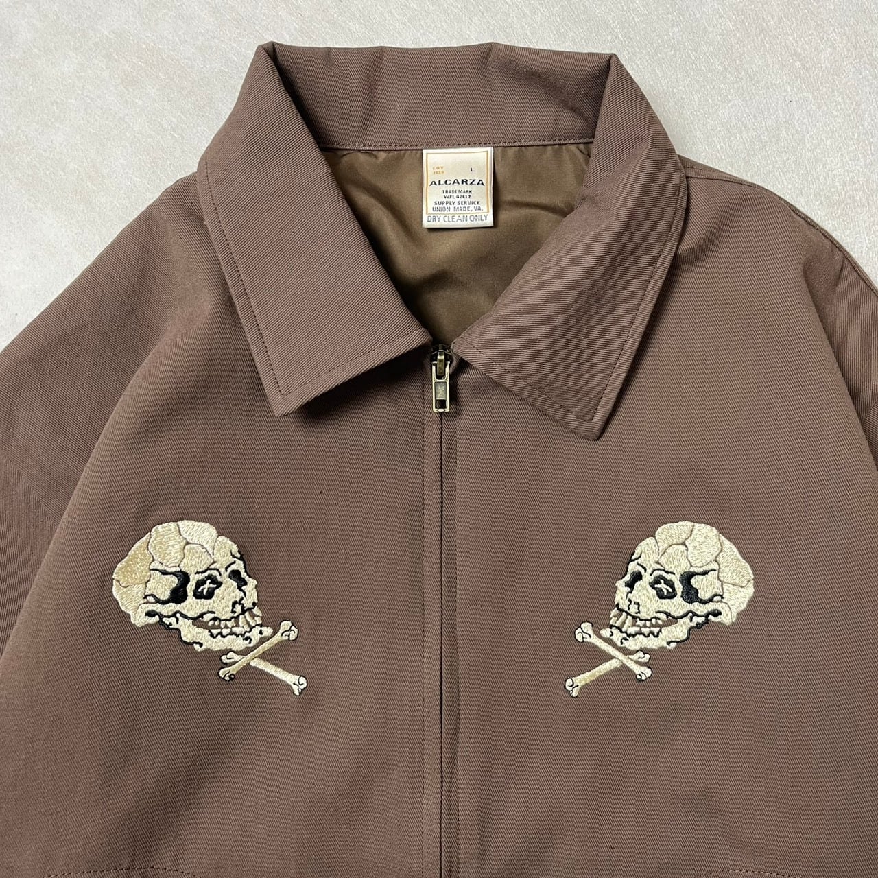 ・ヴィンテージ古着市場で人気のスカルモチーフをサンプリングし、ドリズラージャケットに落とし込みました。