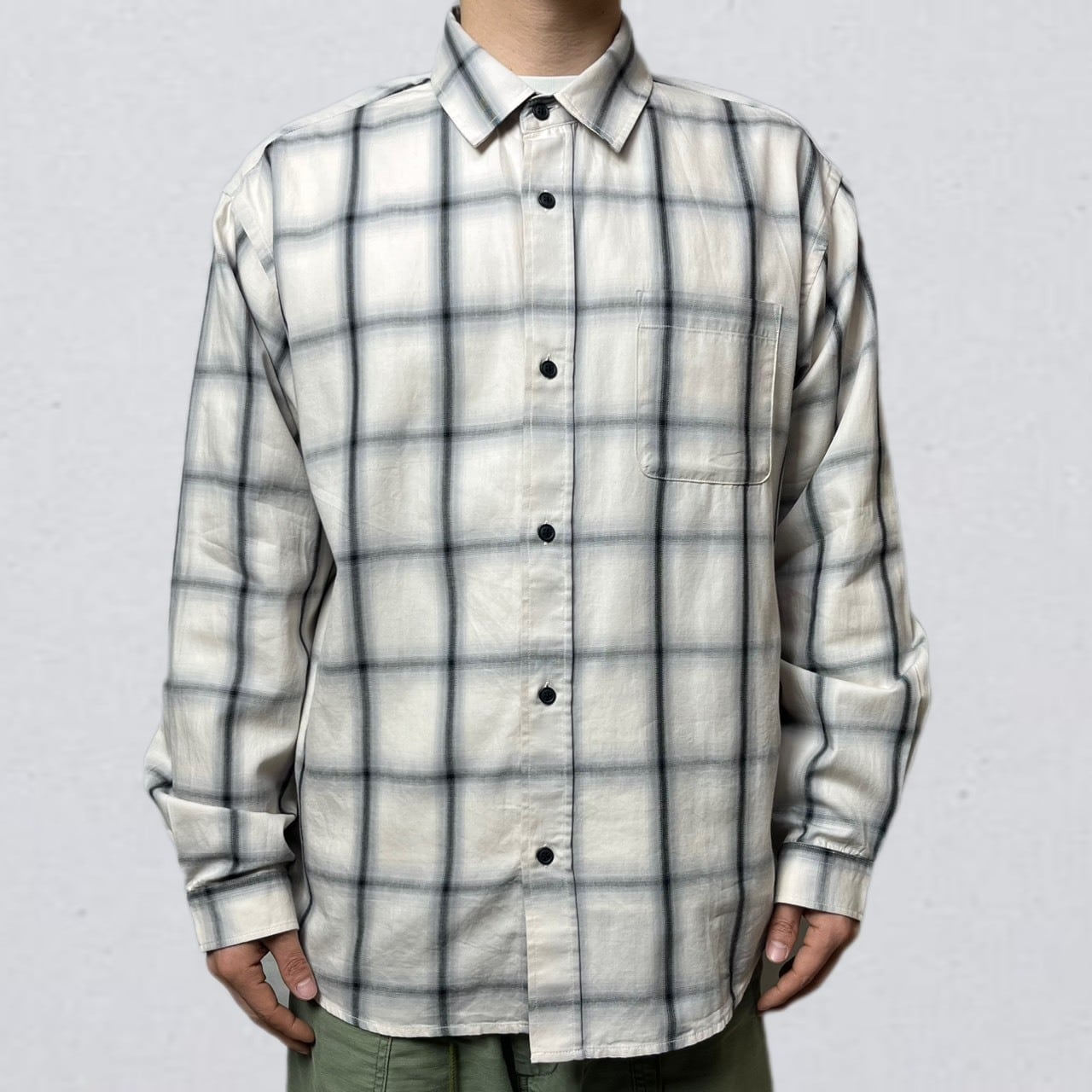 やわらかくぼかしたオンブレチェックが印象的な長袖シャツ。