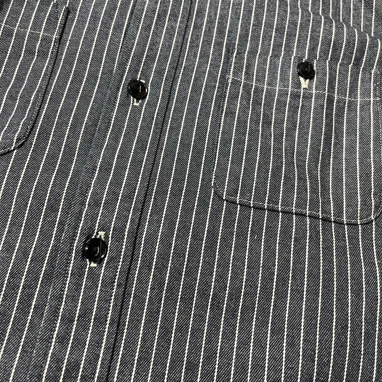 10番手の糸で織られたハリのある丈夫な生地で、両ポケや猫目ボタンを採用。〝THEアメカジワーク〟な仕上がりです。