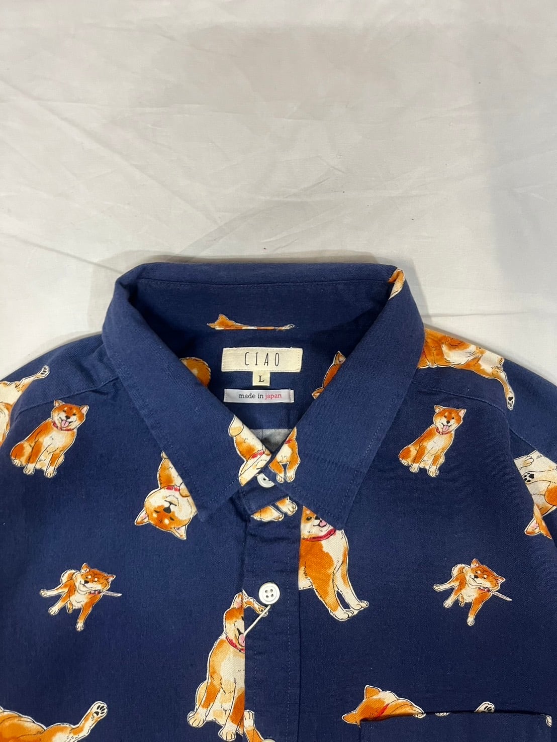 犬好きの方への素敵なギフトや、リラックスしたカジュアルコーディネートにも最適です。このシャツを着て、日常に楽しさと癒しをプラスしてみませんか?