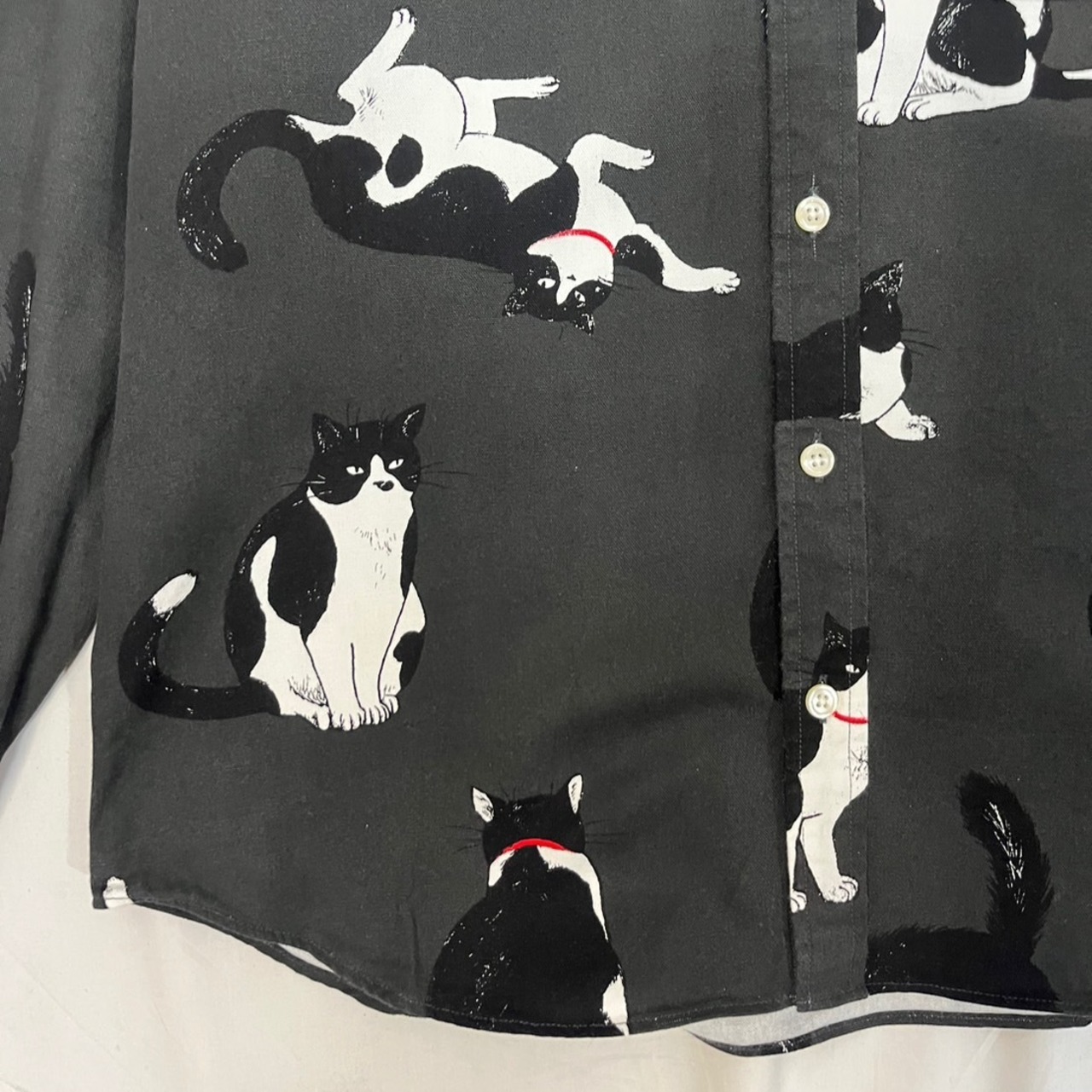 ハチワレねこ長袖シャツは、日常のカジュアルスタイルから特別なシーンまで幅広くご活用いただけるアイテムです。日本製の高品質な素材を使用し、快適な着心地を実現しました。独自のハチワレデザインが、さりげなくも印象的なアクセントを加えます。