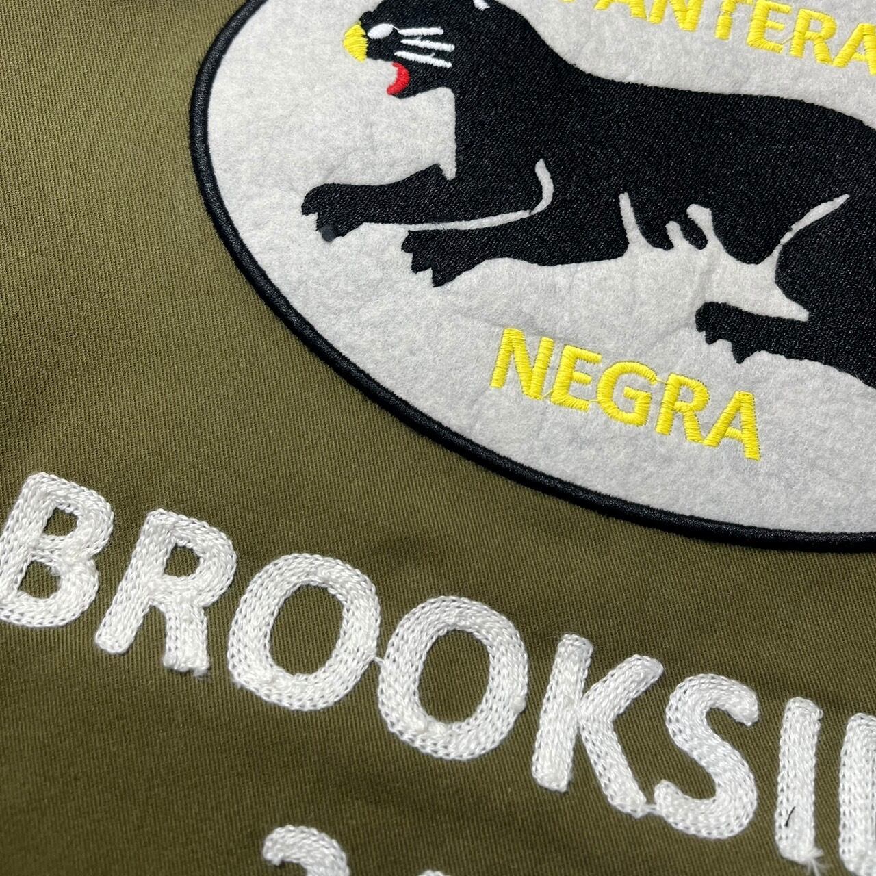 トレンド感あふれるデザインのドリズラージャケットで、カジュアルから特別なお出かけまで幅広く対応可能な一着です。ワッペンとチェーンステッチが個性を引き立て、存在感のあるスタイルを演出します。